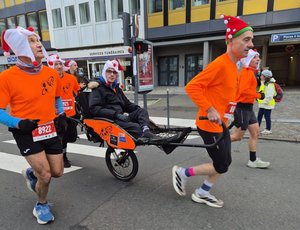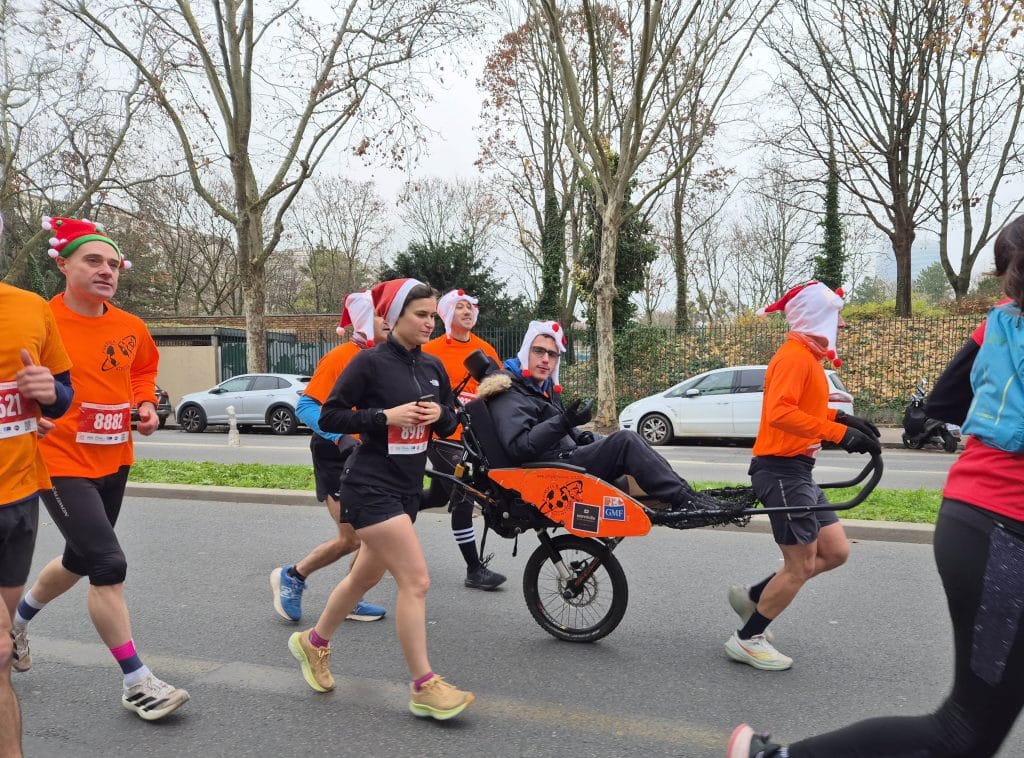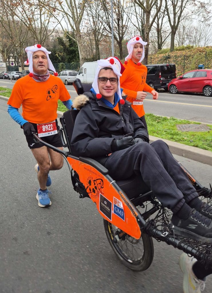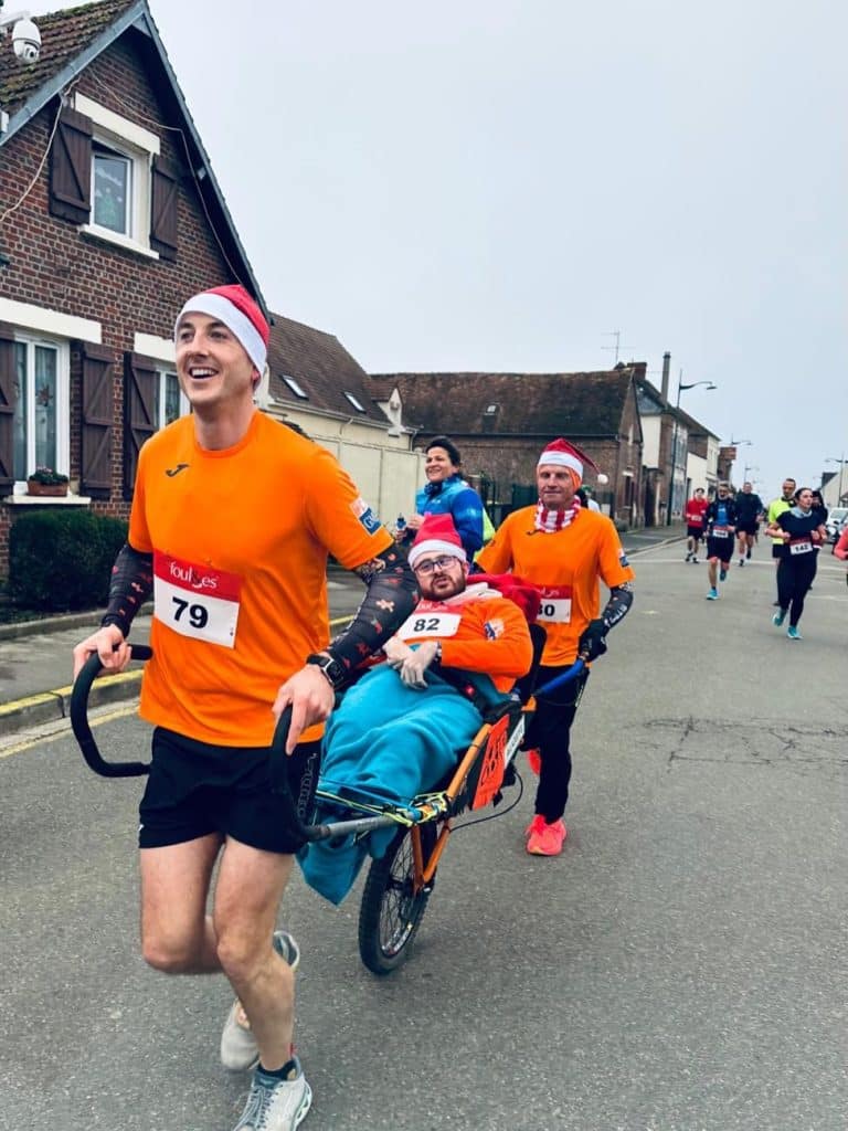 Qui a dit qu’on ne pouvait pas être à deux endroits en même temps ? Hééééé ! Nous on peut. Une équipe se trouve à Issy-les-Moulineaux avec Paul (le maire de Boulogne) aux commandes et une équipe à Senlis avec Théo (l’asticot) en chef de bande. Mais que ce soit dans l’Oise ou en région Parisienne, le bonheur est le même. Avec Paul et Théo il est décuplé. Après tant d’années à nos côtés, ces deux pilotes de joëlette chevronnés nous apportent à chaque fois plus de plaisir. Et c’est ça notre plus beau cadeau de Noël.