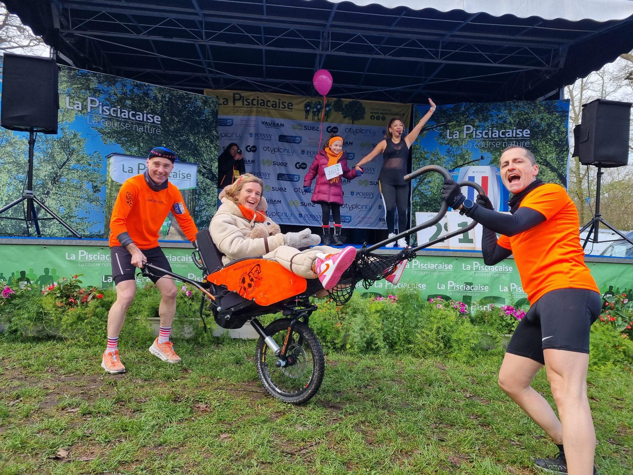 C’est Marianne qui la première entre dans la danse. Une boucle de 5km, pour ses premiers tours de roue en joelette, sa maman s’était chargée de donner le rythme et de l’insuffler à tous les participants. « Allez, venez et entrez dans la danse ».